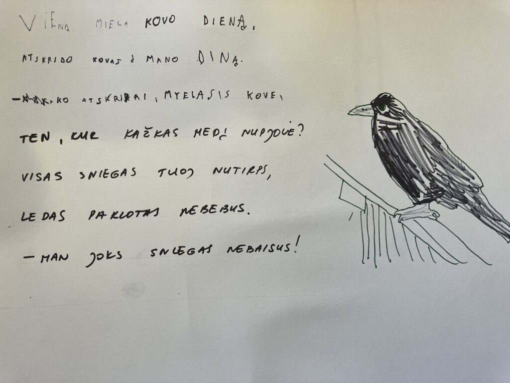 Su dukra dar ir eilėraštį kūrėme. Didžiausią įspūdį man paliko vaiko padtangos ne rimą derinti, o jos filosofinės mintys.