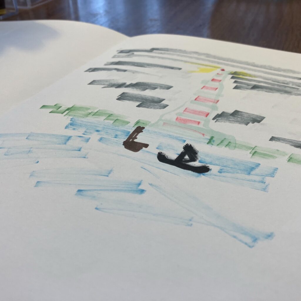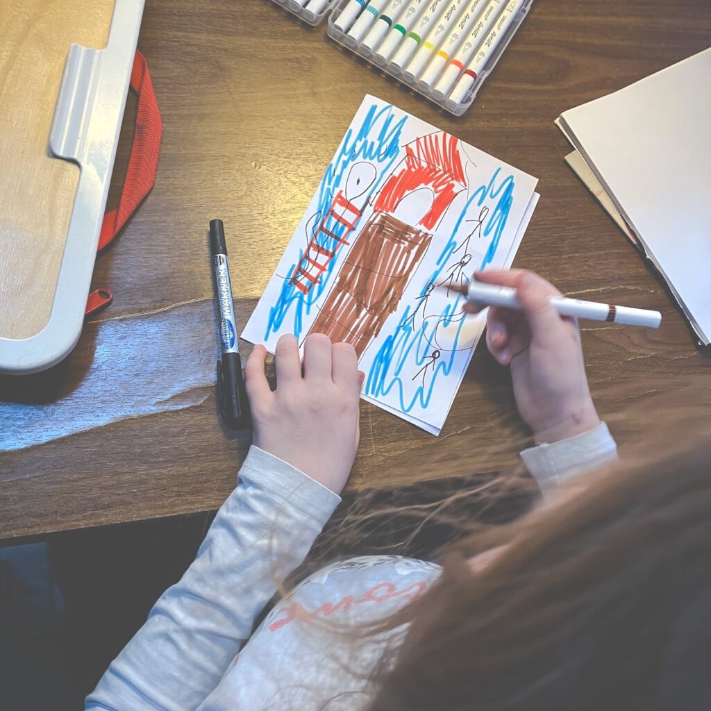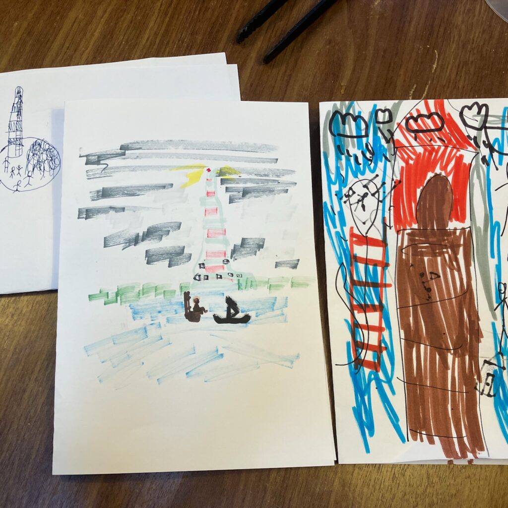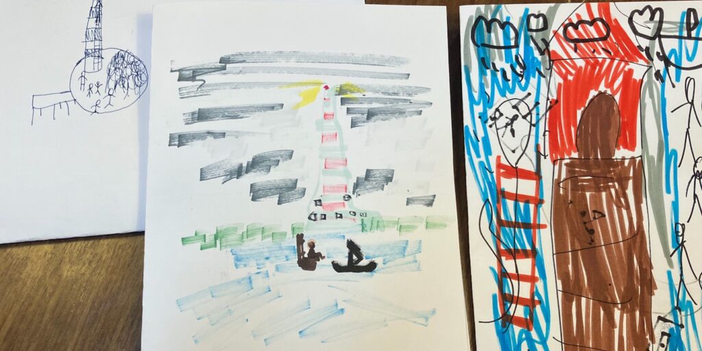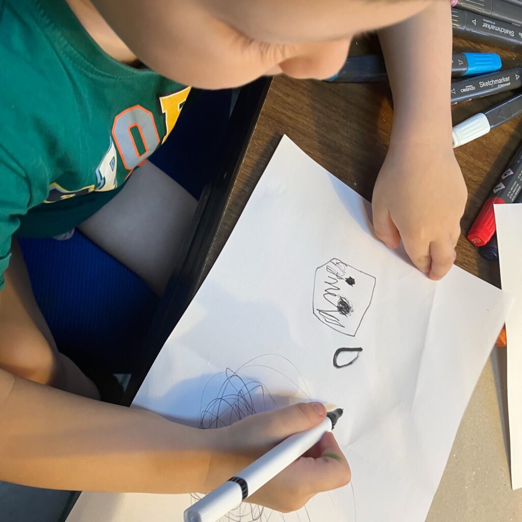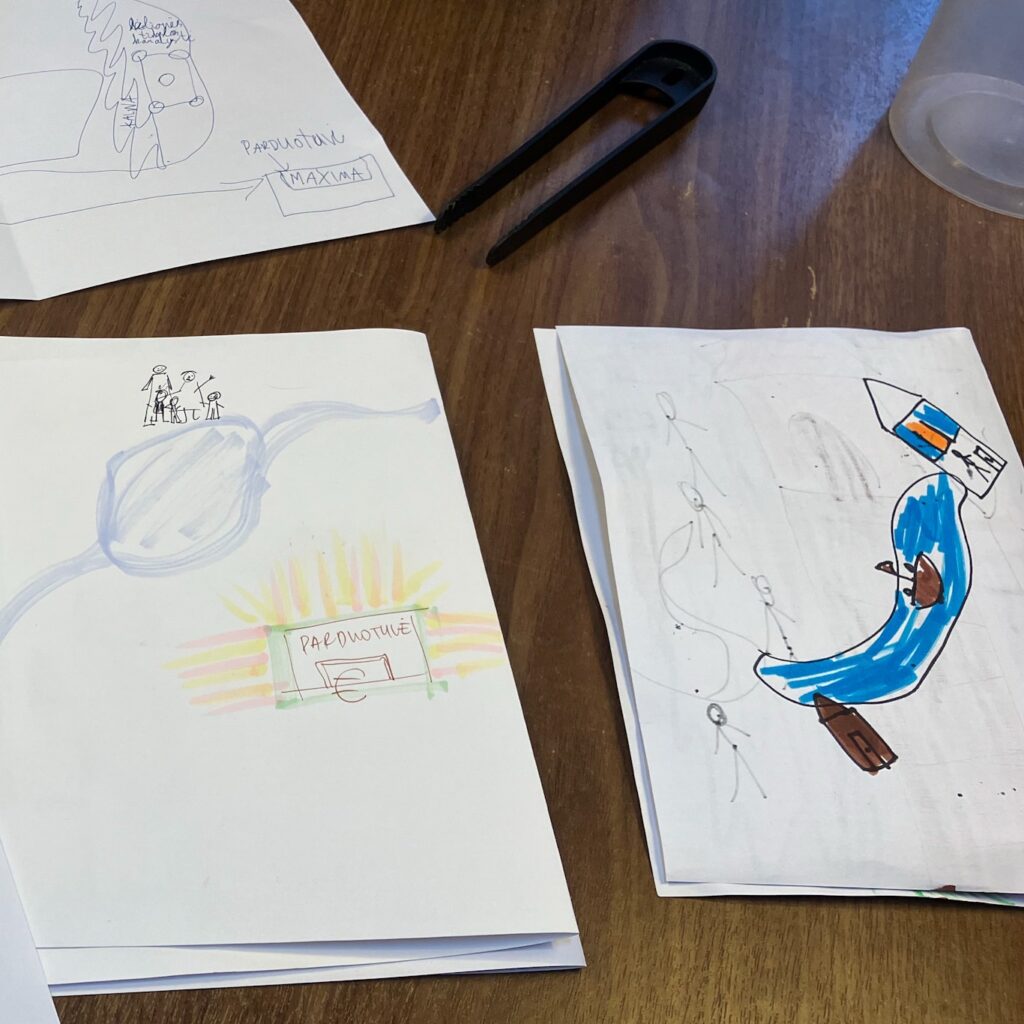 Svarbu vaikams paaiškinti, kad tai ne dailės pamoka 🙂 labiau eskizai.